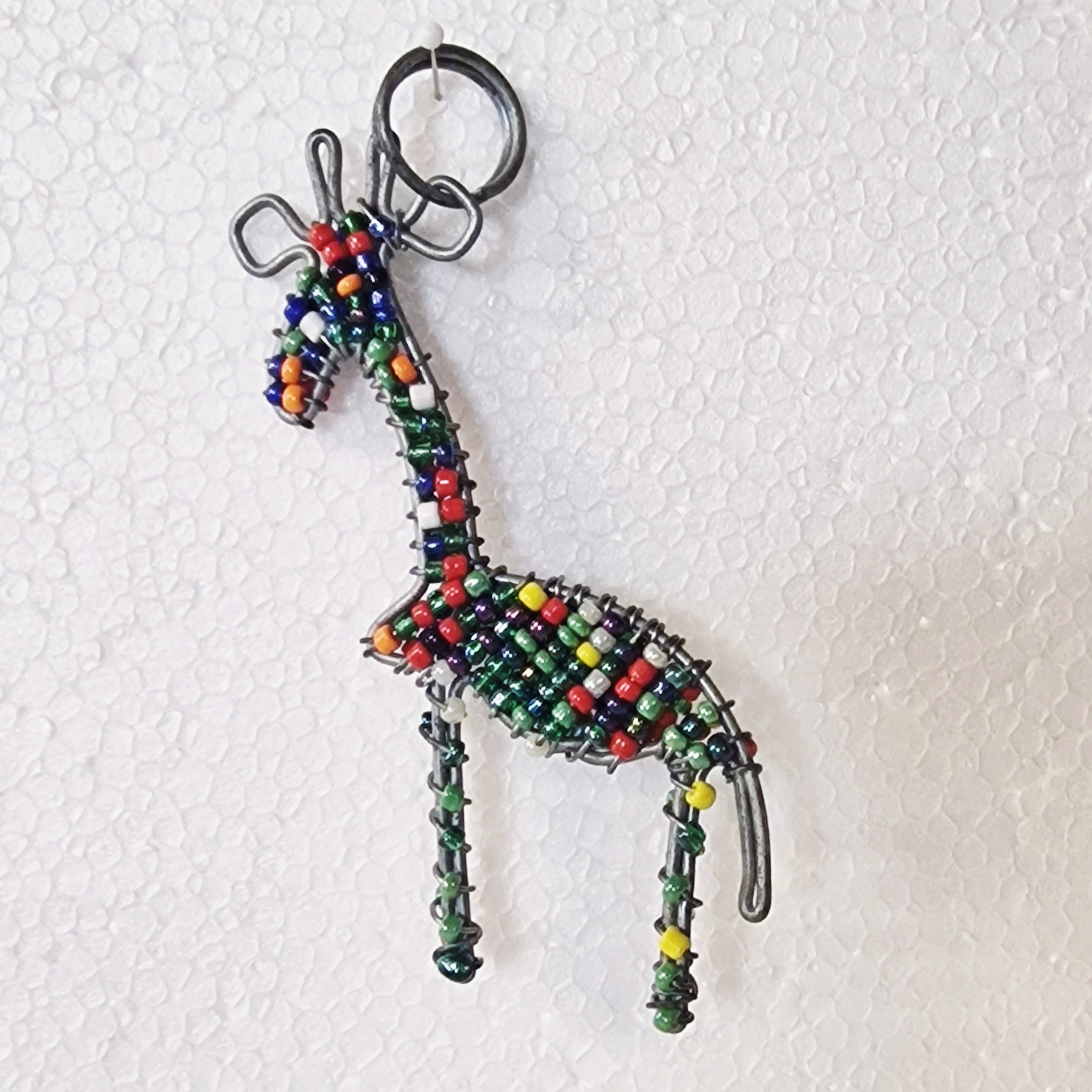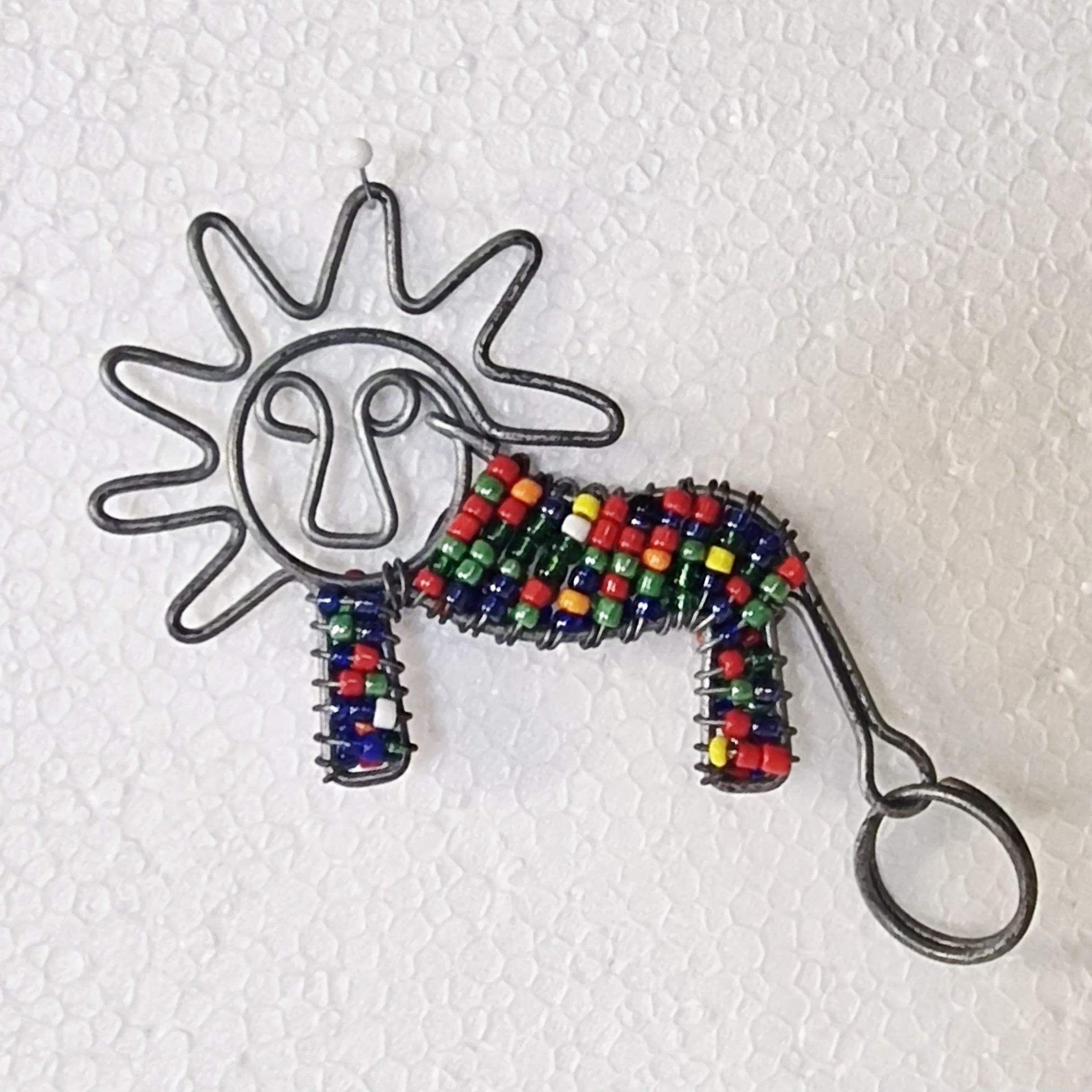Owen - bead work artistAfrican animal keyrings made of sturdy 2mm diameter wire and traditional beads. Wire artisans shape the animal figure frame.  Each wire frame is then wrapped with random or uniform colour combinations of glass beads to create the keyrings.