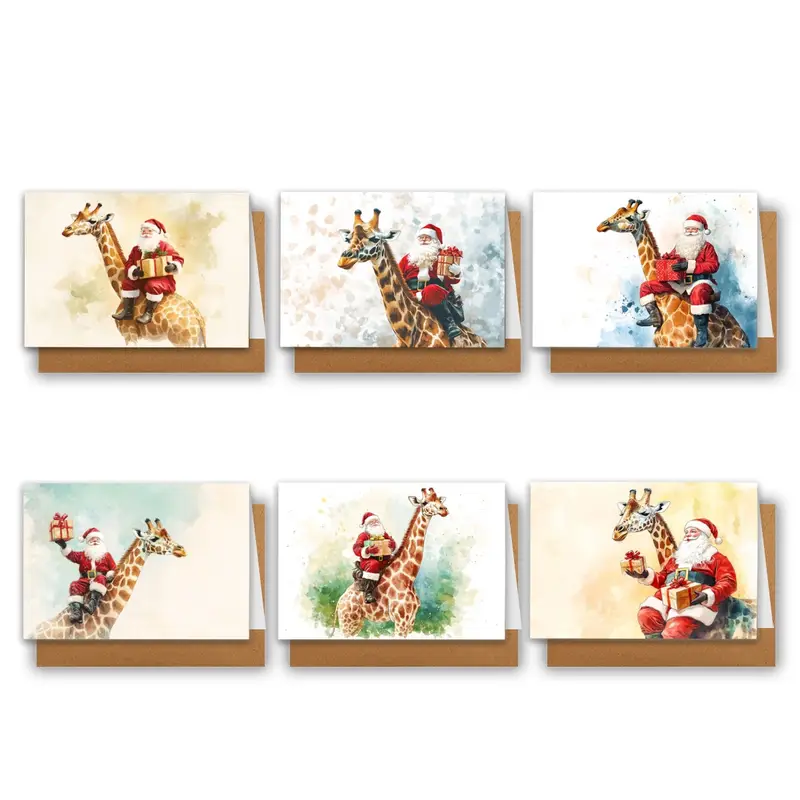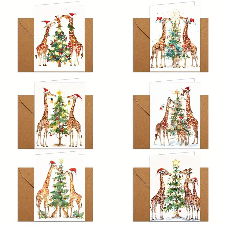 Christmas cards. Cute giraffes. Set of six.
