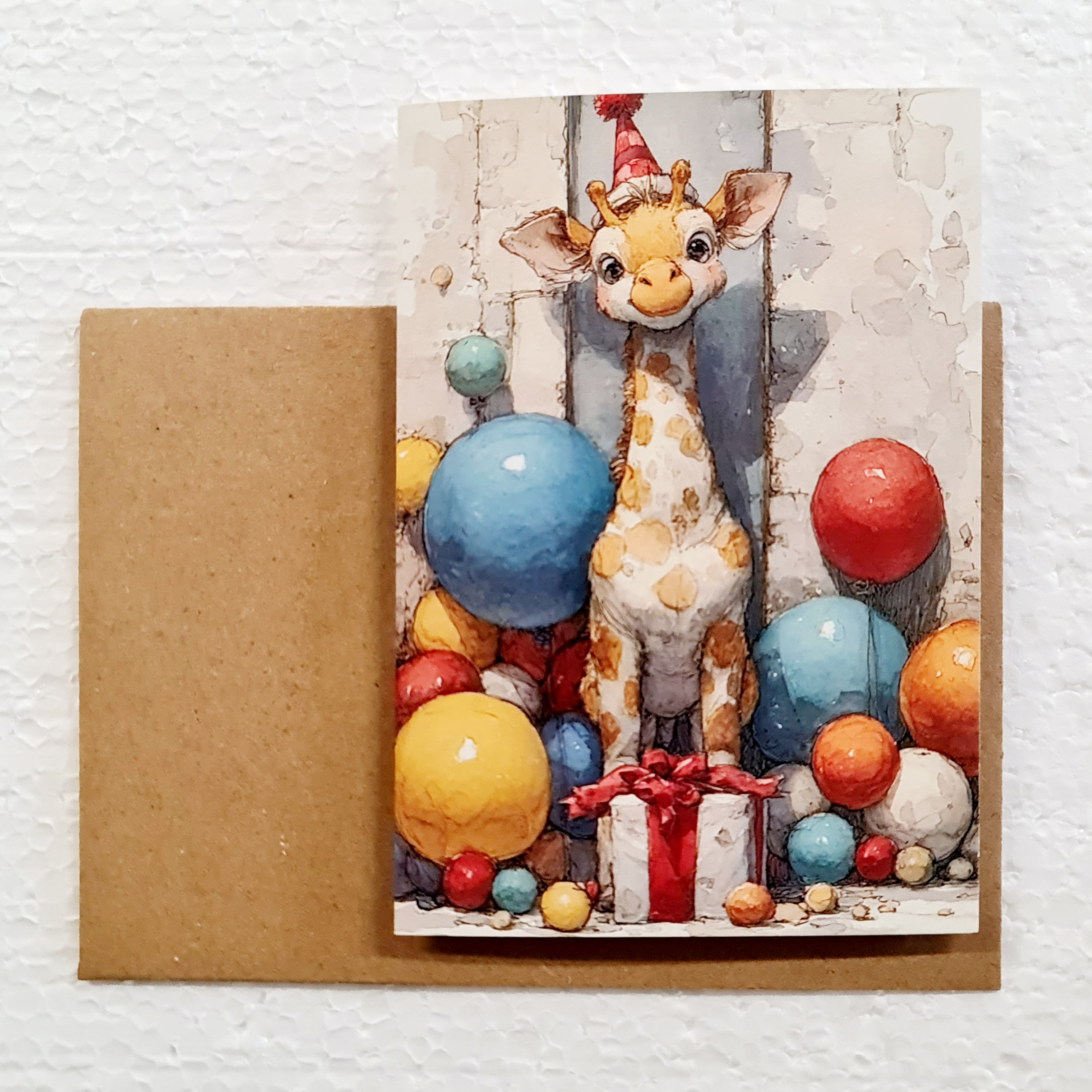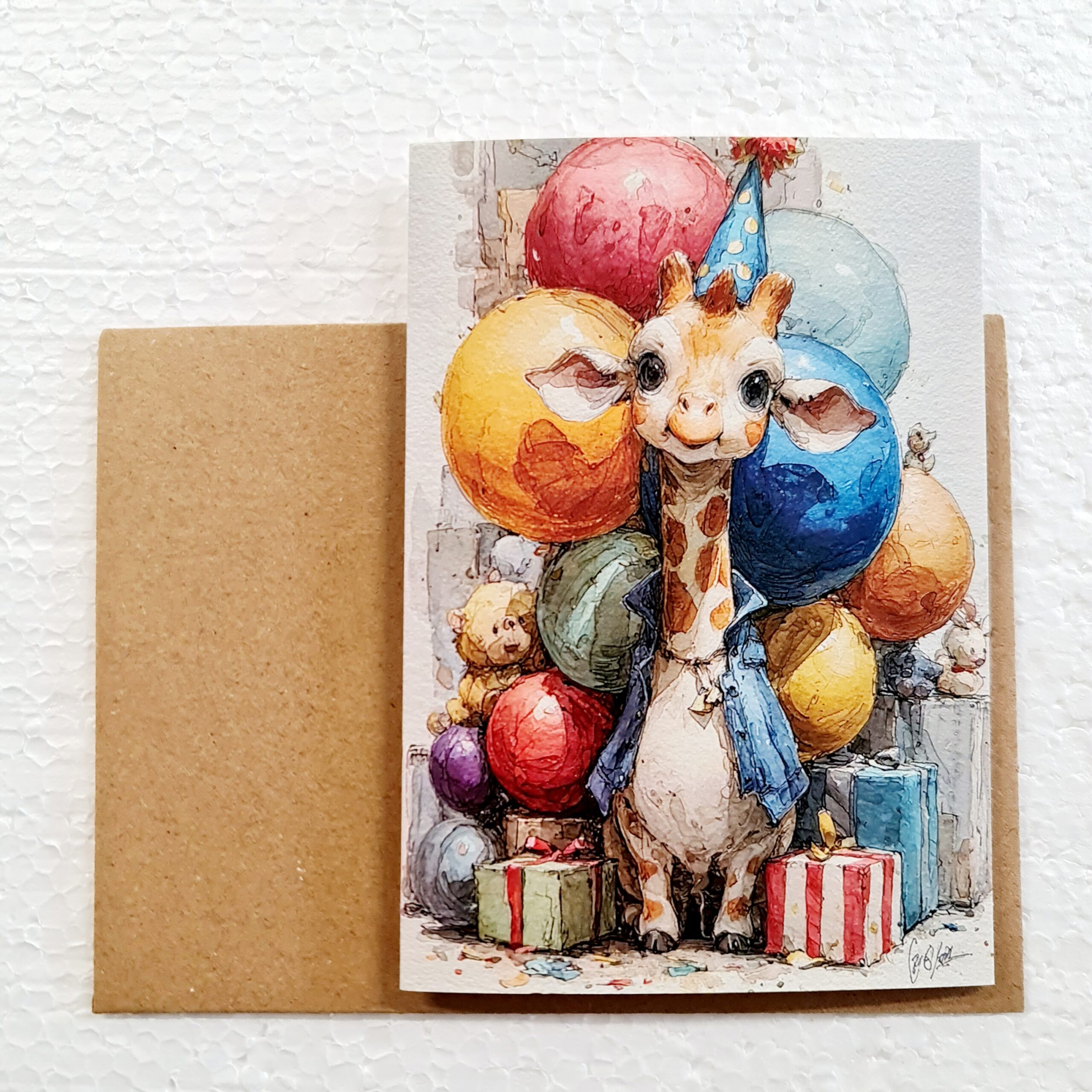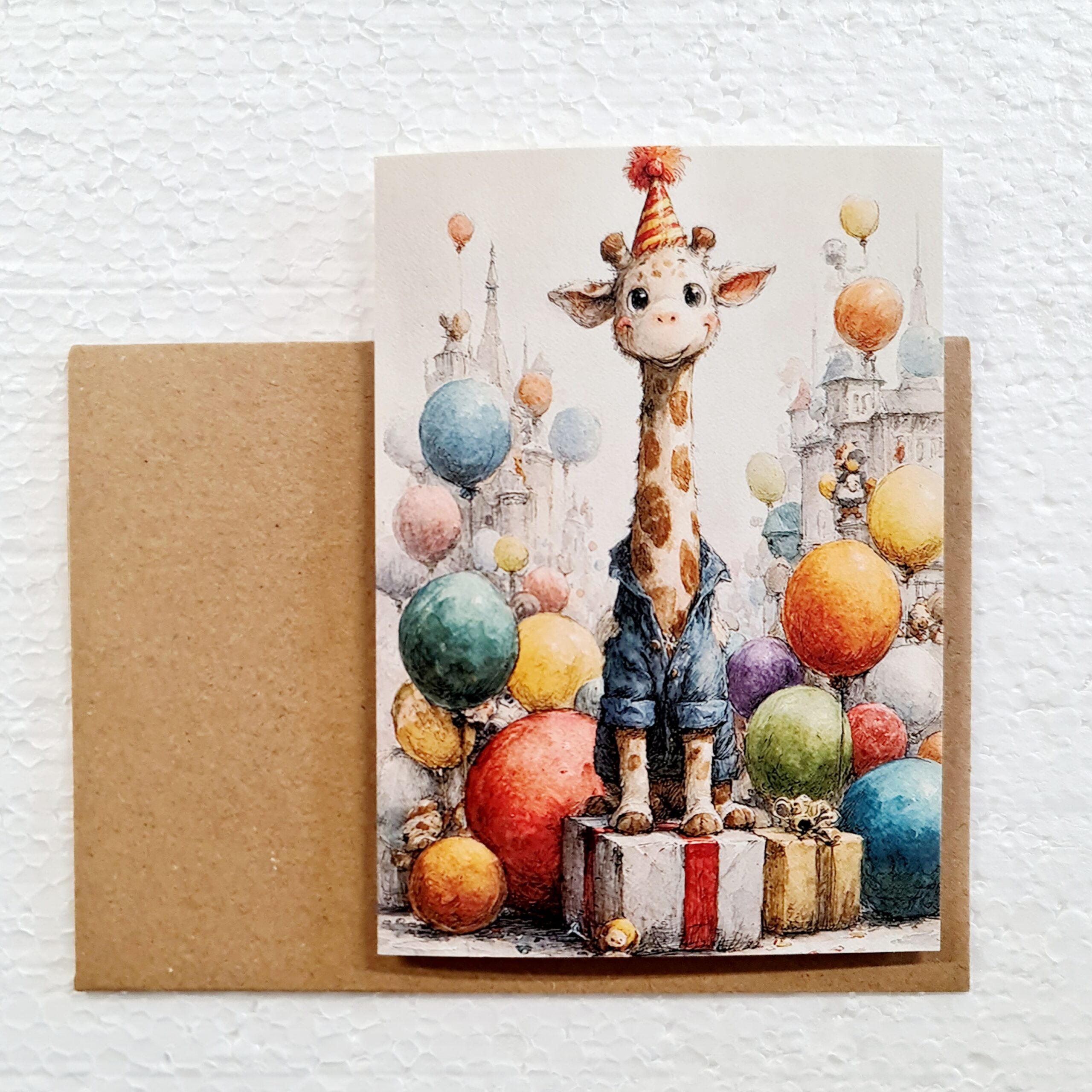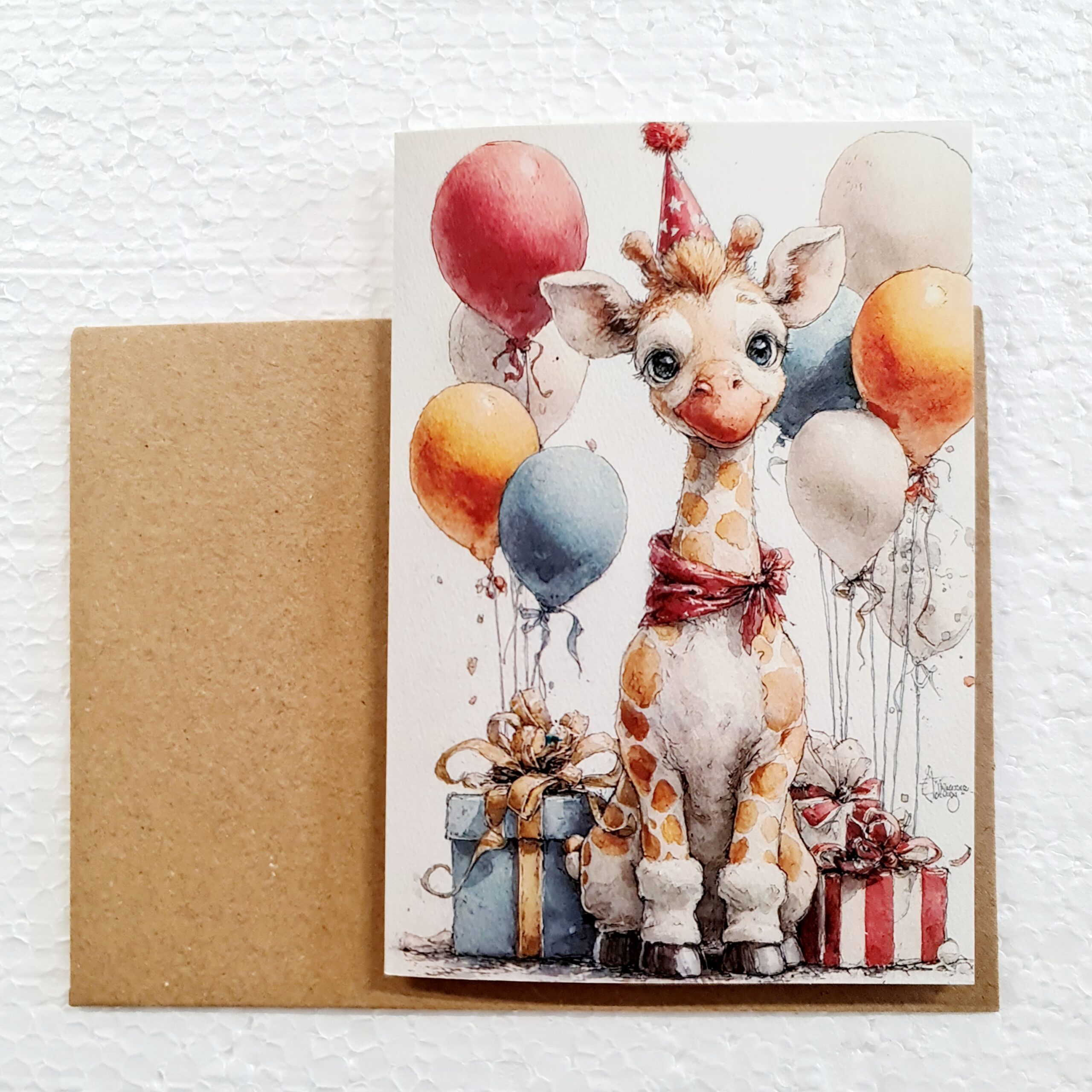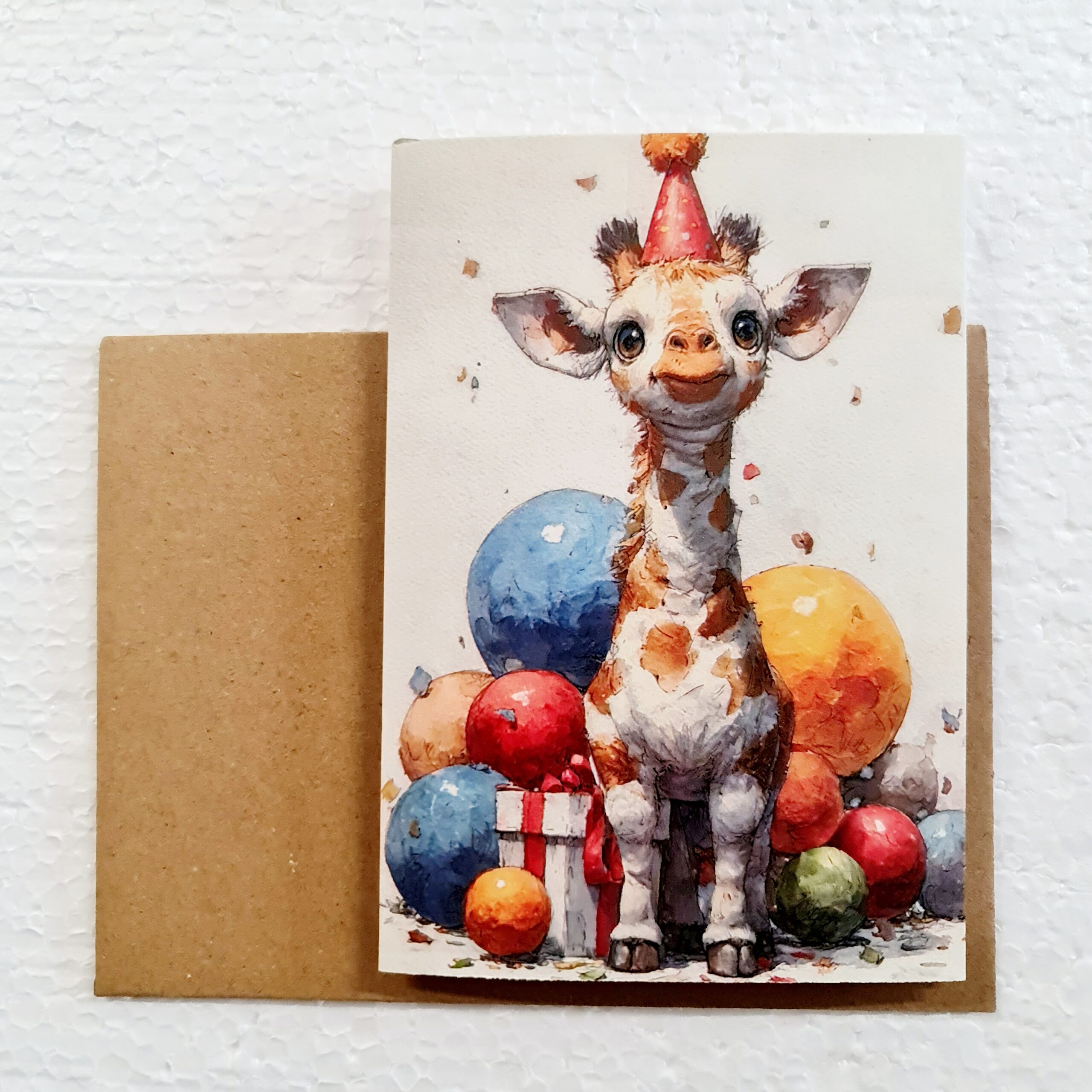 Greeting cards. Baby giraffes. With kraft paper envelope.