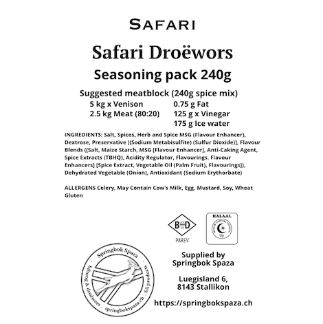 Flavour Blend [Salt, Maize Flour, Maize Meal, Sugar, MSG (Flavour Enhancer), Hydrogenated Vegetable Fat (Palm Fruit), Flavouring (Celery), Anti-caking Agent, Acidity Regulator, Flavour Enhancers Spices (Irradiated), Capsicum Extract (TBHQ)], Salt, Spices & Spice Extracts, Preservative (Potassium Sorbate), Sugar, Colourant.