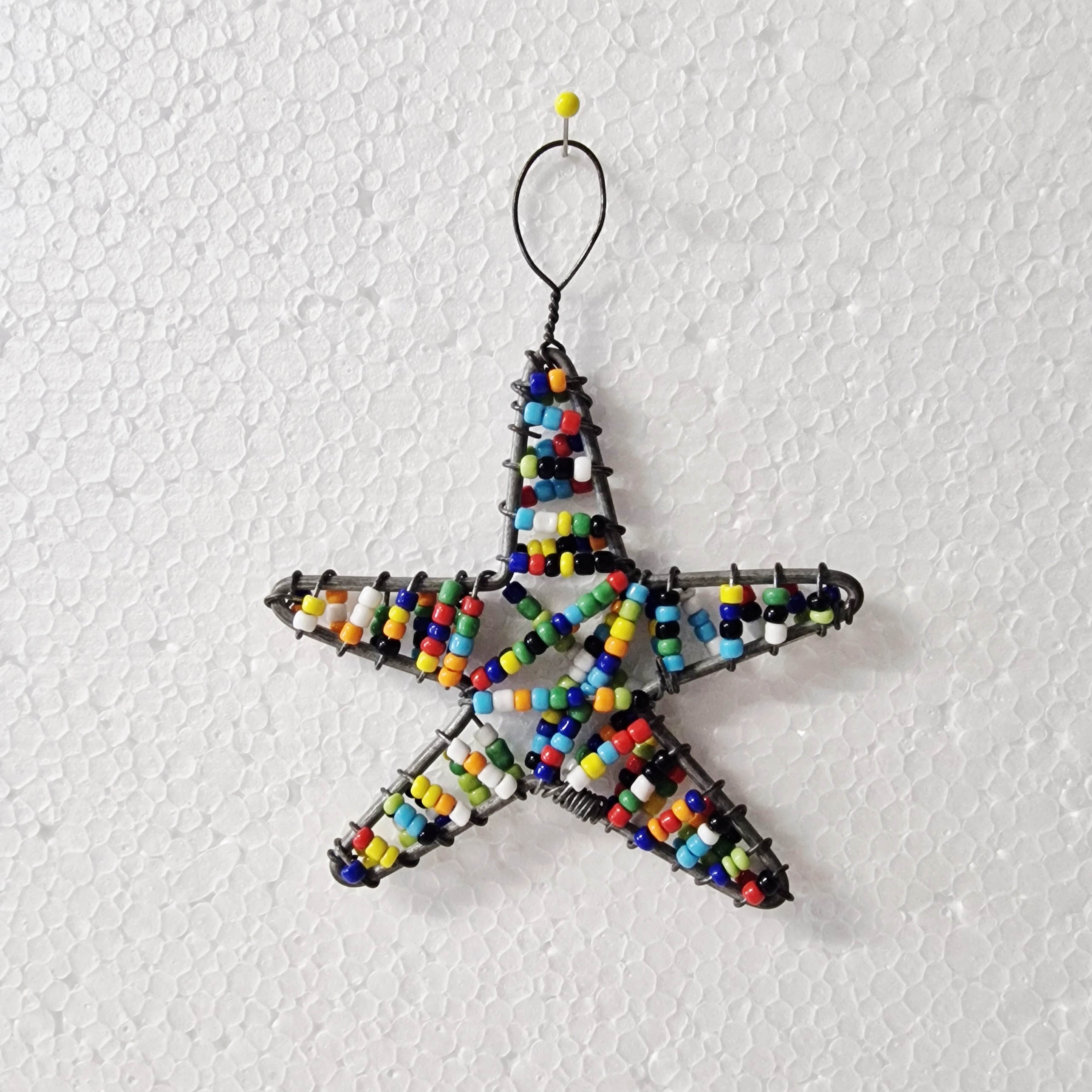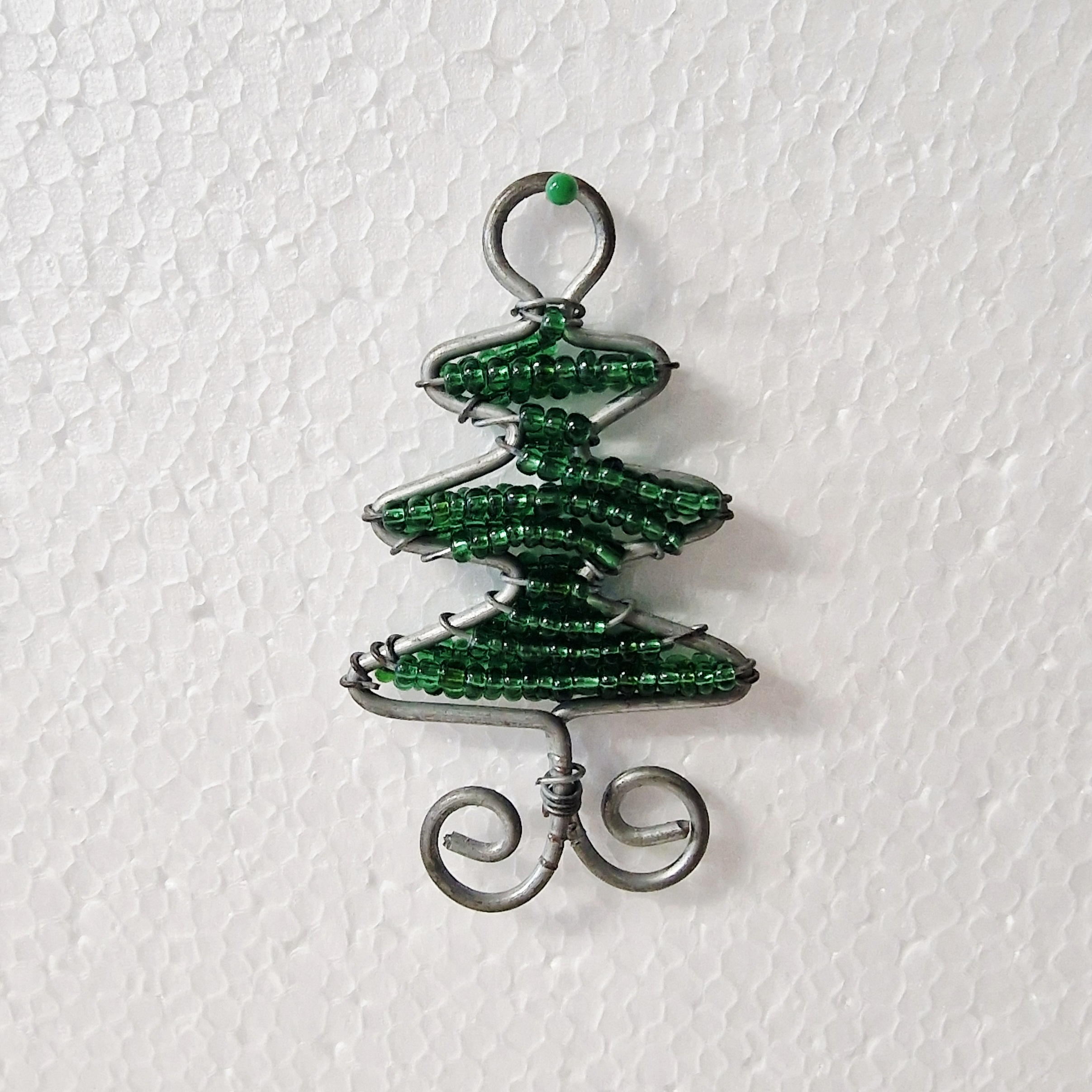 Beaded Christmas tree decorations made of sturdy 2mm diameter wire and traditional beads. Wire artisans shape the frame. Each wire frame is then wrapped with random or uniform colour combinations of glass beads to create the shape.